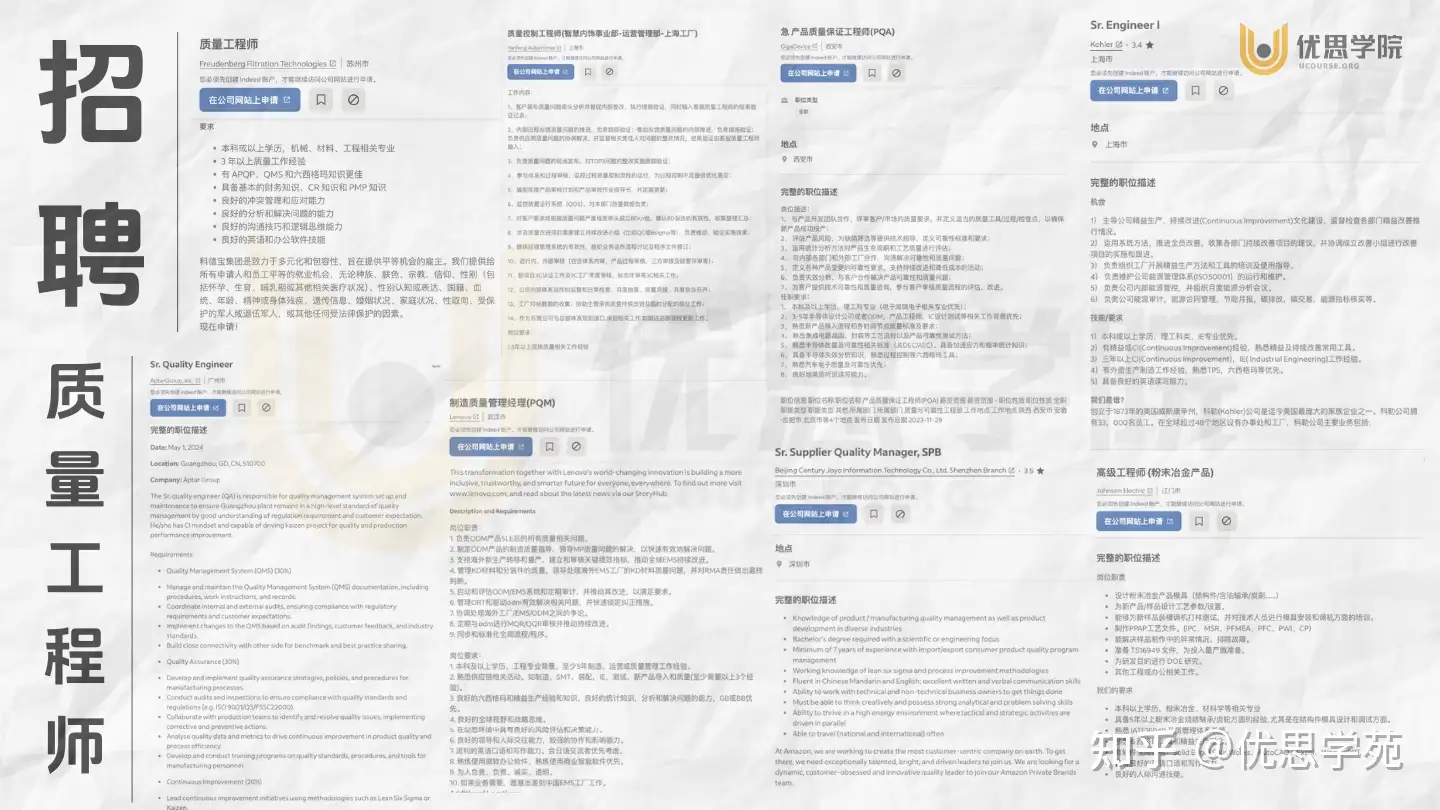 想要了解质量工程师需要具备哪些技能和知识,最直接且实际的方法就是分析招聘广告中的关键词,这比道听途说更加有效。为此,优思学院搜集了大量关于质量工程师职位的招聘信息,并为大家进行详细分析。我们通常选择中高级职位进行分析,因为这对初级或尚未入行的人来说更有意义,帮助他们了解如何改进自己并规划未来的职业路径。