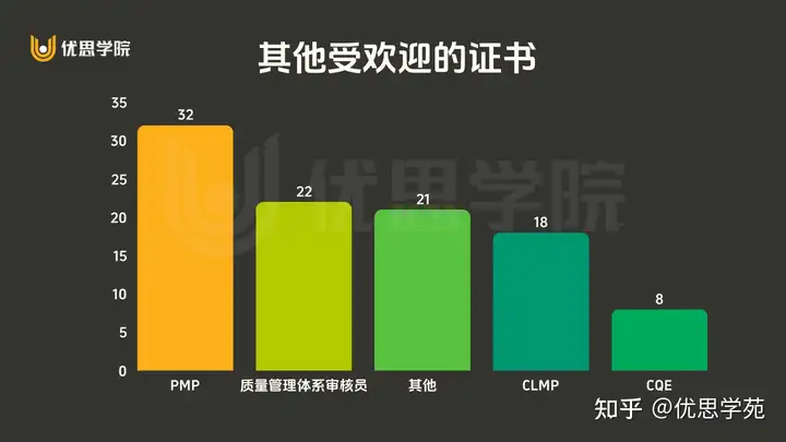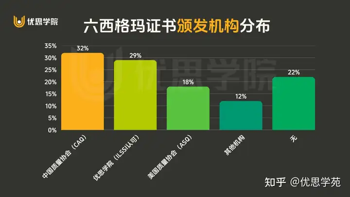 受访者中证书来源自优思学院和 CAQ 为多,合计占比超过 60%。(此分布仅指代表受访者的分布,而不一定能代表全国的实际分布。)