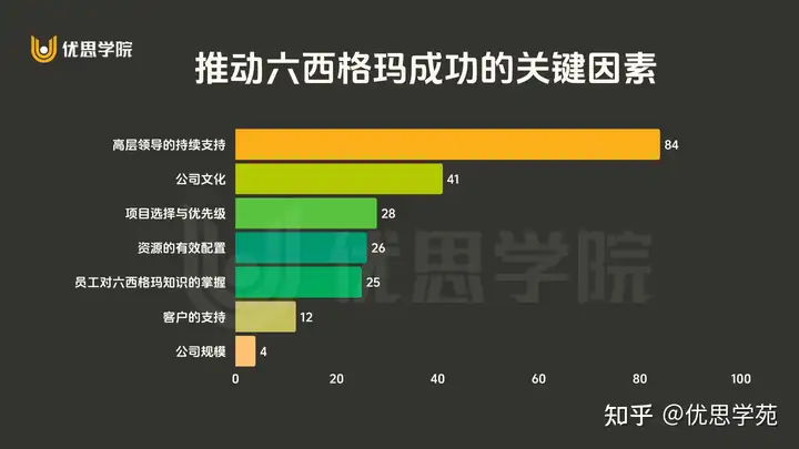 高层支持占比近 75%,公司文化次之。这表明领导力和组织氛围是成功基石,而非单纯技术工具。