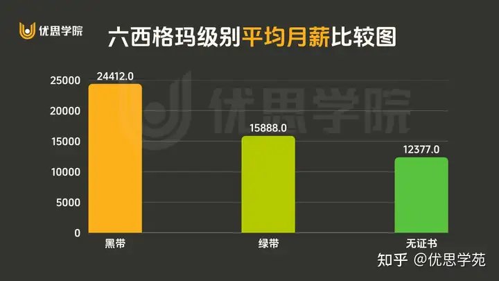 证书级别平均月薪 (RMB)与无证书者差异黑带 24,412+12,035 绿带 15,888+3,511 无证书