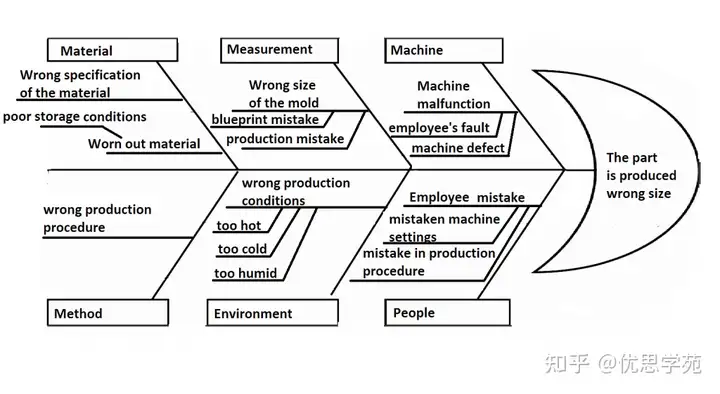 传统鱼骨图常用的六大类因素包括: