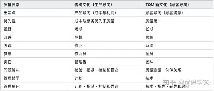 目前欧美和日本的管理专家大力鼓吹「全面质量」的概念,生产者导向与顾客导向(consumer oriented)有全然不同的企业文化。