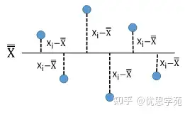 N 是全部数据点的个数。看根号下面那个求和项,就是把每个单个数据点和整体平均值的差值平方后加起来(见图2)。