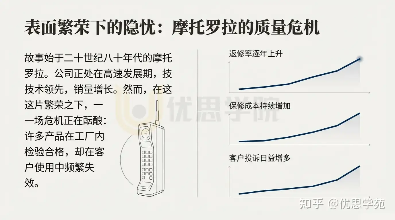时间回到二十世纪八十年代初。那时的摩托罗拉正处在高速发展阶段,技术实力不断增强,产品销量持续增长。但在表面繁荣之下,一个隐蔽却危险的问题正在累积——返修率、保修成本和客户投诉逐年上升。许多产品在工厂内顺利通过检验,却在客户使用过程中频繁失效。