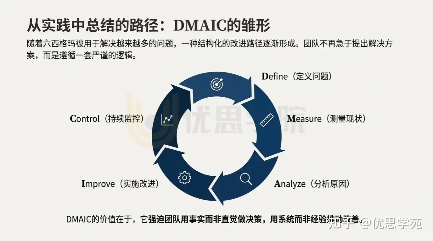DMAIC 的价值不在于步骤本身,而在于它强迫团队用事实而不是直觉做决策,用系统而不是经验推动改善。