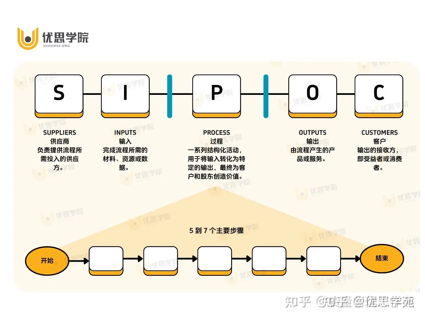 初学者通常可以从三个步骤展开:第一是理解“什么是流程”,学习用 SIPOC、流程图、价值流程图等方式把流程从混乱的信息中梳理出来。优思学院认为,SIPOC 是所有改善工作的起点,它帮助你了解供应商、输入、流程、输出及客户,从而让你站在系统视角理解组织如何运作。