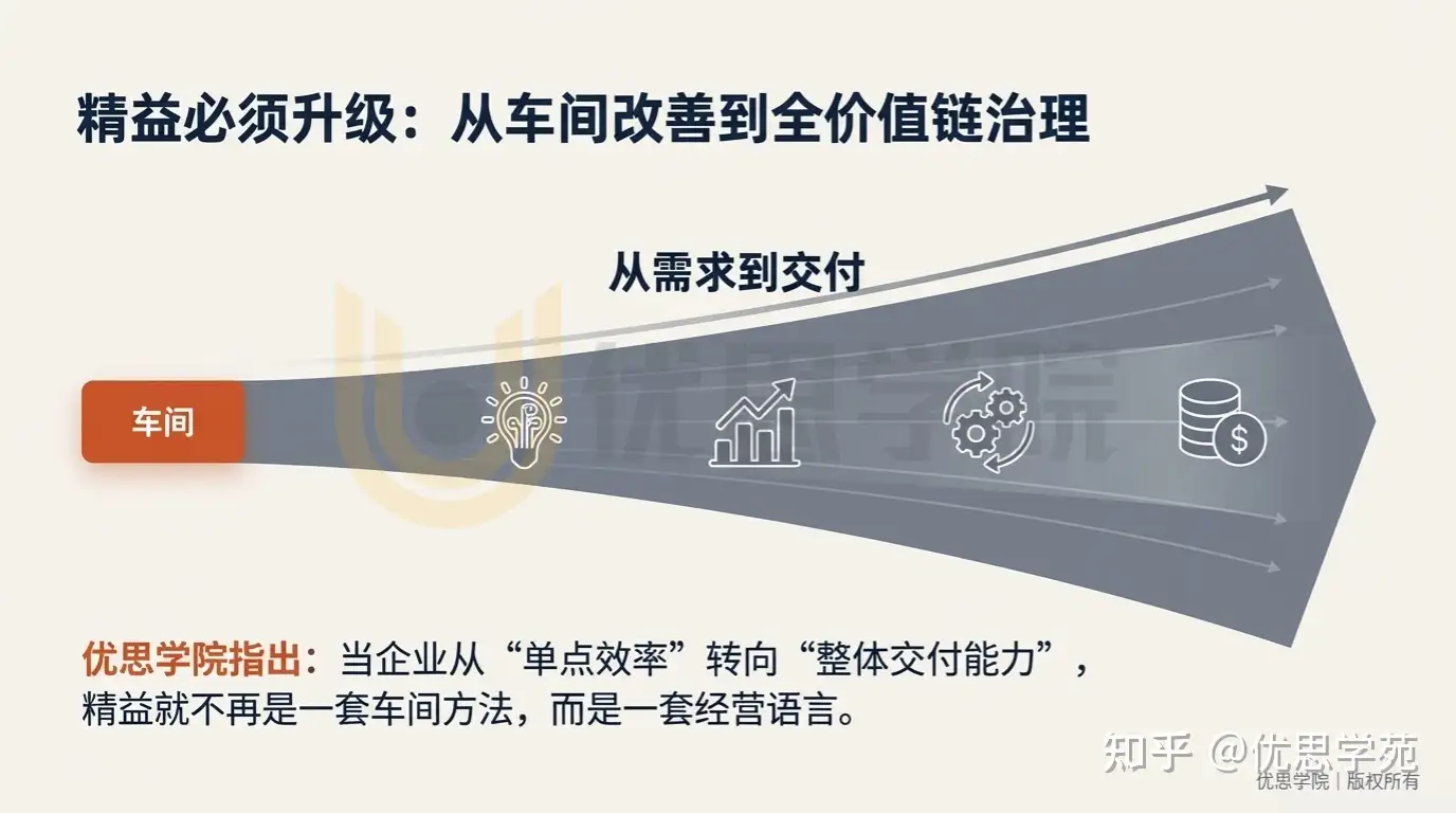 四、精益仍然适合,但“适合的方式”必须变:从车间走向全价值链