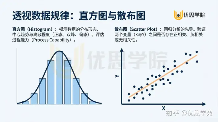 - 商业洞察: 散布图是回归分析的先导。在投入昂贵的**实验设计(DOE)**之前,散布图是最廉价、最高效的驱动因素筛选手段。