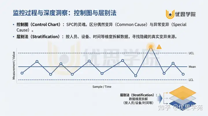 - 警告: 管理者最常见的失误是对“偶然波动”进行过度调节,这在统计学上被称为 “Tampering”(过度调节)。这种干预不仅无法稳定流程,反而会像往火里泼油一样增加系统变异。