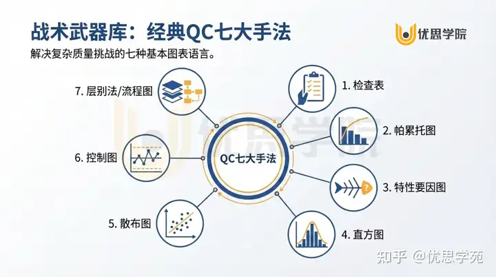 QC七大工具并非孤立的统计技术,而是 DMAIC 逻辑链条上的接力跑: