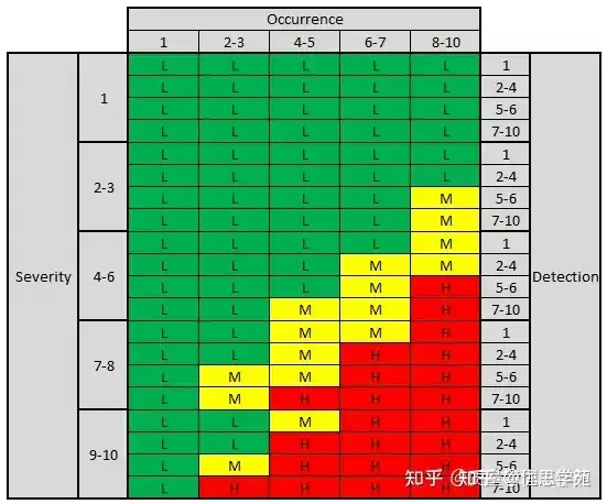 但如果是在非汽车行业,例如一般制造业、电子业、服务业、医疗、流程改善项目,情况就不一样了。很多六西格玛项目今天仍然在使用传统的 FMEA 格式,也就是 Severity、Occurrence、Detection 三项评分,再乘出来一个 RPN,用来判断哪些失效模式要优先处理。这种方式在培训、内部改善项目、DMAIC 项目里仍然非常常见。原因很简单,一方面很多企业没有全面切换到 AIAG/VDA 的新版结构,另一方面不少行业本来就没有义务跟随汽车行业的 FMEA规范。
