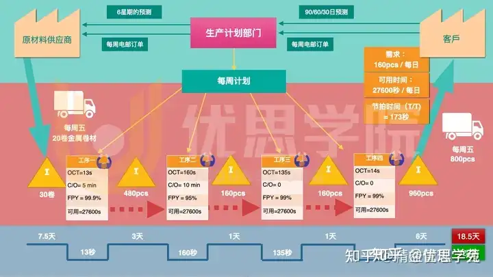 这就是精益生产常说的重点:改善不只是让操作员动作更快,而是要压缩整个价值流中的等待、停滞和库存。